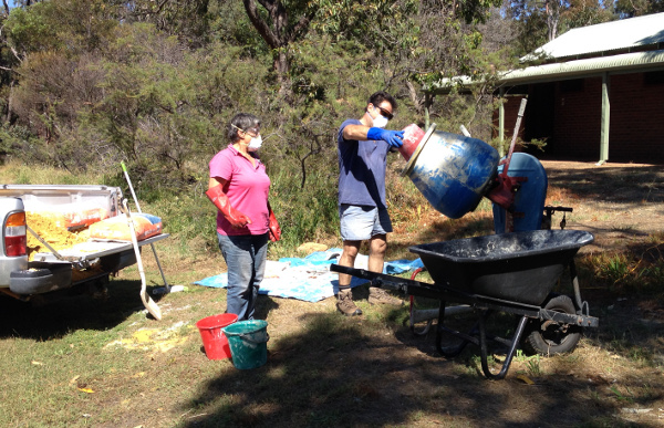 More concrete mixing, this time a cream coloured render.